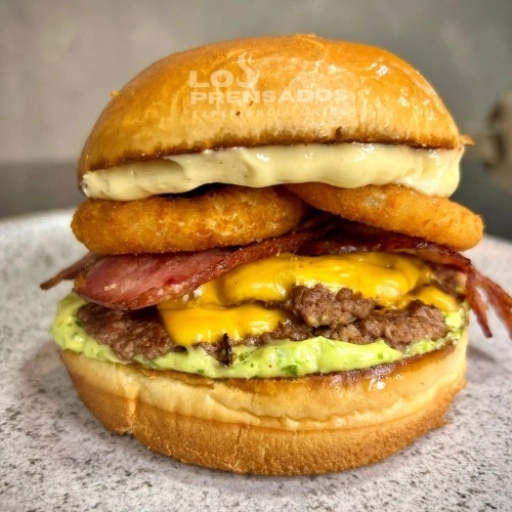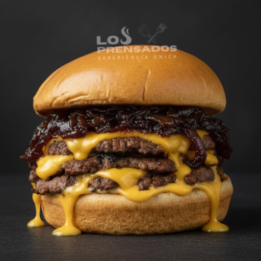 Hambúrguer triplo com 240g de carne smash suculenta no pão brioche, cheddar melt, cebola caramelizada no shoyu e açú... Ver completo