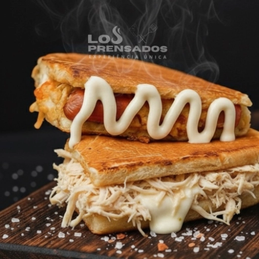 Prensado de 15 cm recheado com calabresa ,frango, bacon ,catupiry original e cheddar melt ,escolha salsicha ou linguiç... Ver completo